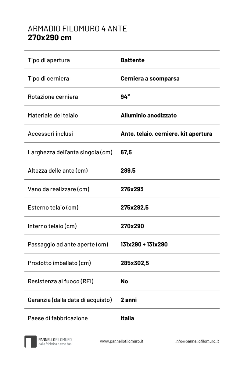 Armadio filomuro a 4 ante simmetriche cm 270×290