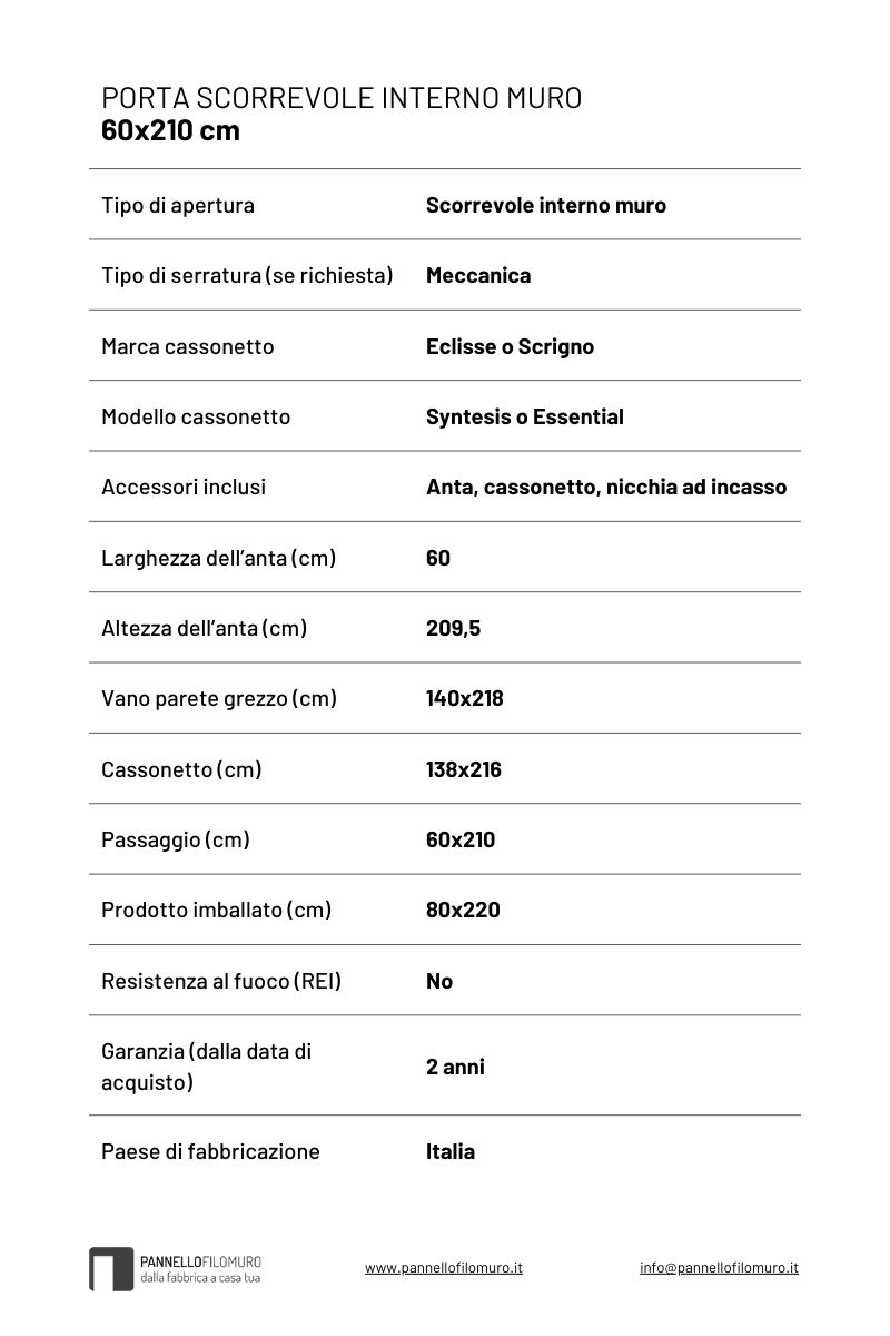 Porta scorrevole filomuro speciale cm 60 x 210
