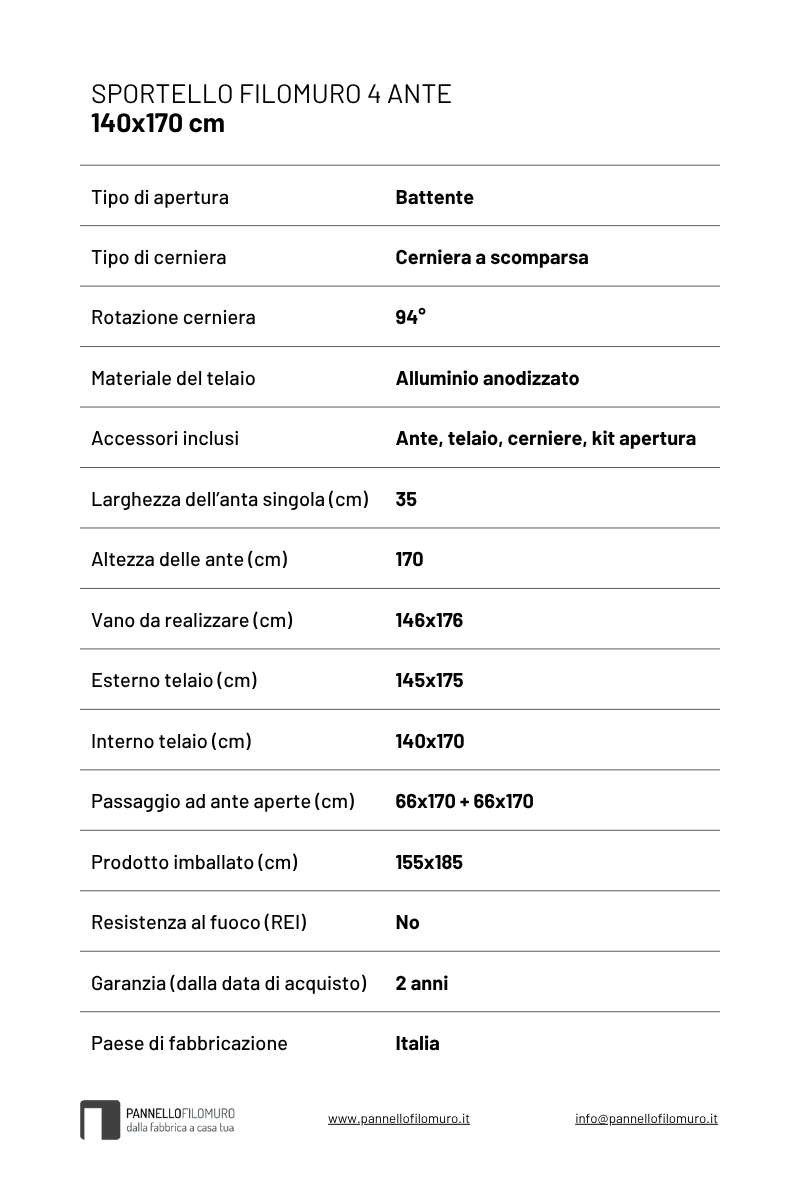 Sportello filomuro a 4 ante cm 140×170